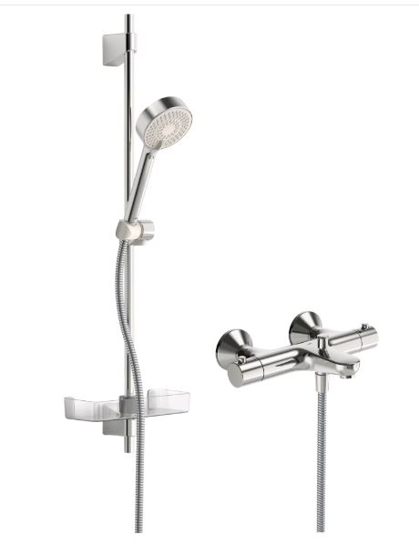 Термостатический смеситель для ванны и душа, который быстро и точно реагирует на изменения температуры воды и сохраняет ее на стабильном уровне. Ограничитель температуры воды на рукоятке. Излив с переключателем и аэратор. Контроль за расходом воды EcoFlow. Комплект включает эксцентриковые соединители, декоративные розетки, обратные клапаны и грязевые фильтры. Душевой комплект содержит душевую штангу 915 мм, шланг и ручной душ с тремя режимами.