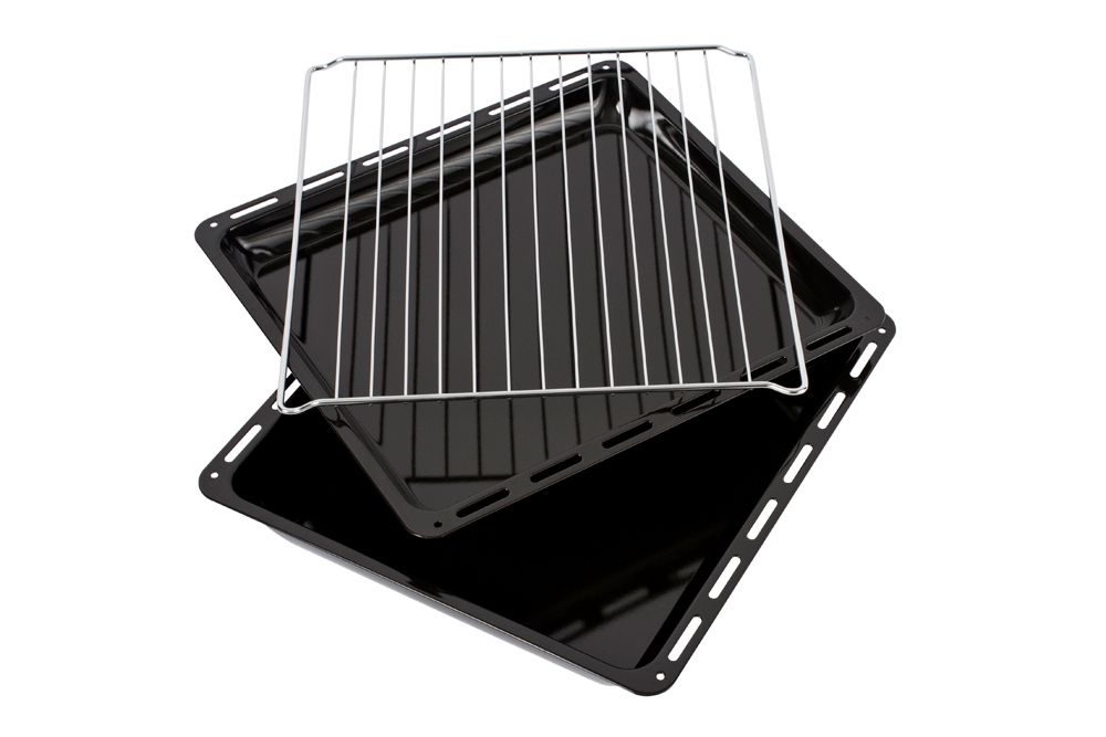 Комплектация: 1 стандартный + 1 глубокий противни с антипригарным покрытием, хромированная решётка