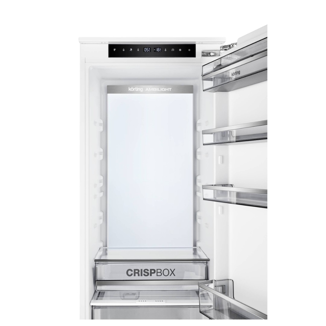 Холодильник KSI 19547 CFNFZ – современный высокотехнологичный встраиваемый бытовой прибор, оснащенный цифровым дисплеем и сенсорным управлением. Общий объем холодильника составляет 267 литров, из которых 200 литров предназначены для холодильной камеры, а 67 литров – для морозильной. Современная технология охлаждения No Frost устраняет необходимость в периодической разморозке, что значительно упрощает уход за прибором. Равномерное распределение температуры обеспечивается благодаря динамическому охлаждению: специальный вентилятор перемешивает воздух, что также способствует более быстрому охлаждению продуктов.