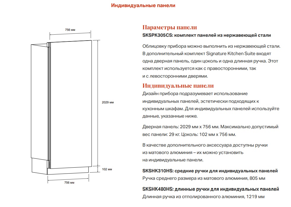 - Комплект панелей/ручек/цоколей из нержавеющей стали: SKSPK245CS